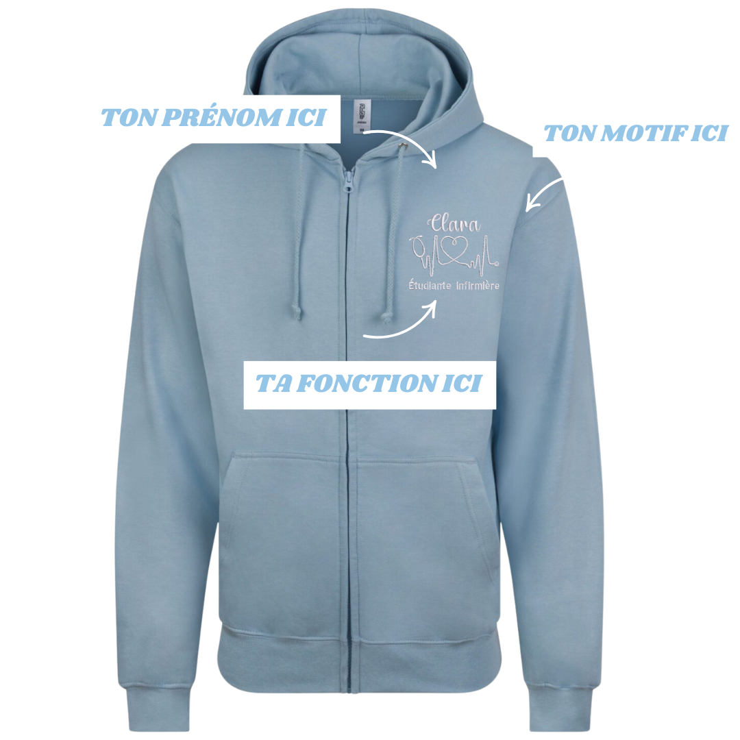 Sweat zip bleu pastel soignant personnalisé