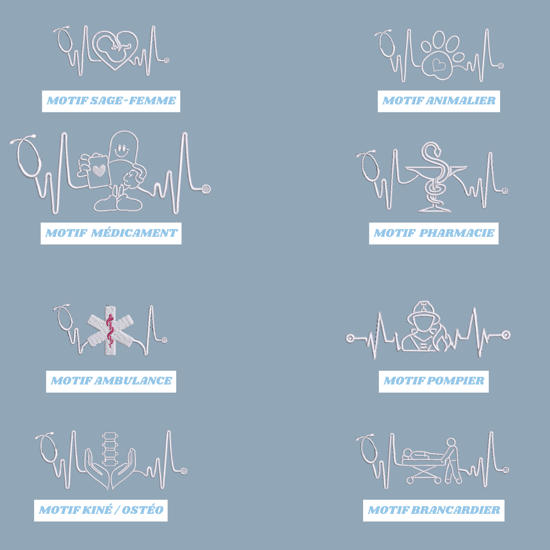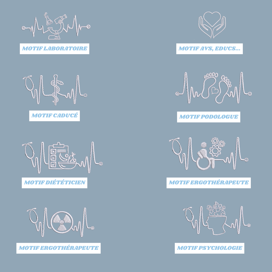 Broderie personnalisée : prénom + fonction + motif.