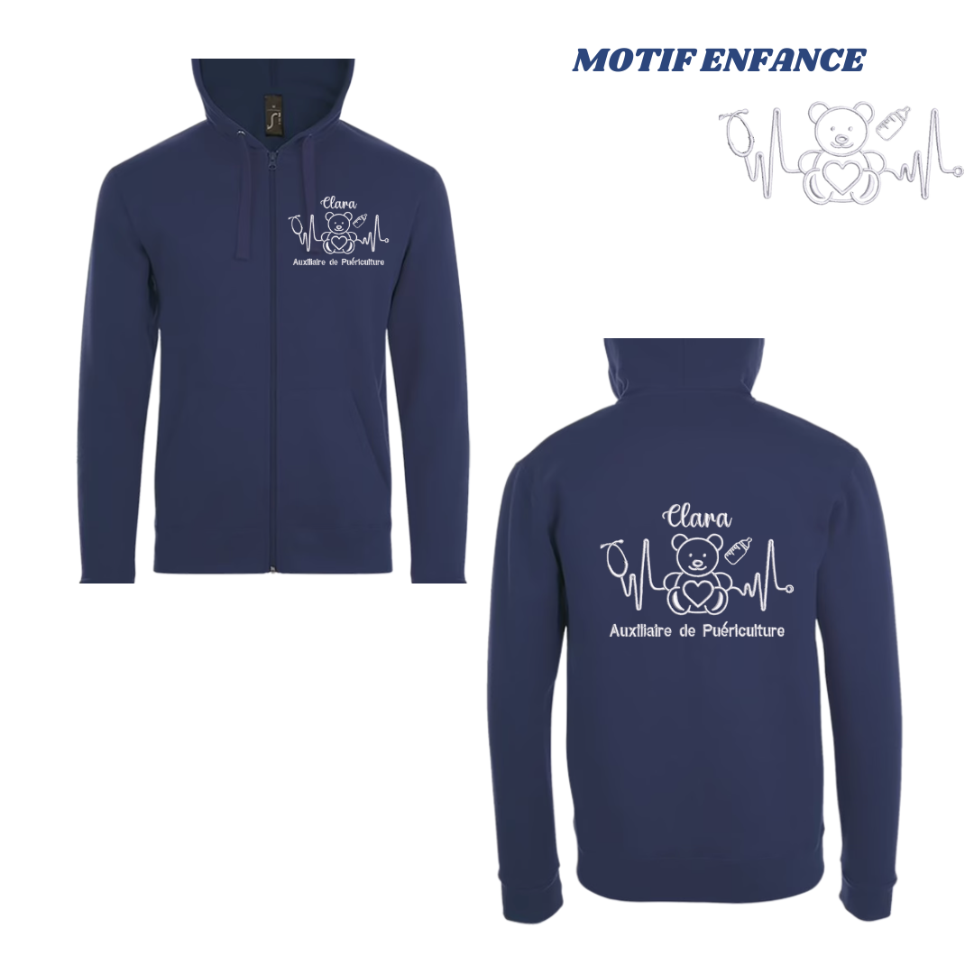 Sweat zip bleu marine soignant personnalisé
